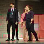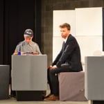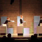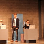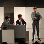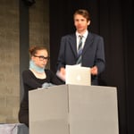 Anfangs Mai inszenierte die Klasse 9A von Thomas Stalder das Stück «Der Fall» des Baselländer Autoren Ramon Gonzalez in der bearbeiteten Fassung des Deutschlehrers Andreas Aebi. Das Stück thematisiert den Fall eines Managers, der über Leichen geht, und den ungelenken Versuch seines Wiederaufstiegs in einem neuen Land. Und nicht nur am Bühnenrand bekommt auch die zunehmende Digitalisierung der Arbeitswelt ihr Fett weg: Der Manager, der selber gerne Stellen wegrationalisiert, landet auf einem Amt, das von Roboterinnen bedient wird - und die machen ihm das Leben schwer.