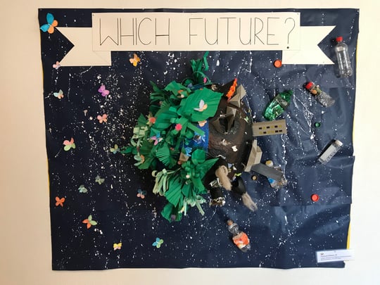 Als Jury lud der SchülerInnenrat unser Hausteam ein, das sich in unseren Frühlingsferien, also während der «Frühjahrs-Putzete» im Schulhaus, die Zeit nahm, die Kunstwerke nach einem Kriterienkatalog zu bewerten. Das Resultat dieser Bewertungsrunde: Den Siegerpreis und das Klassendiplom gewann die Klasse 7B mit ihrem Wandbild «Which Future?»