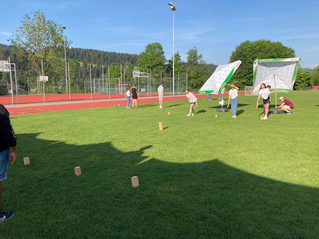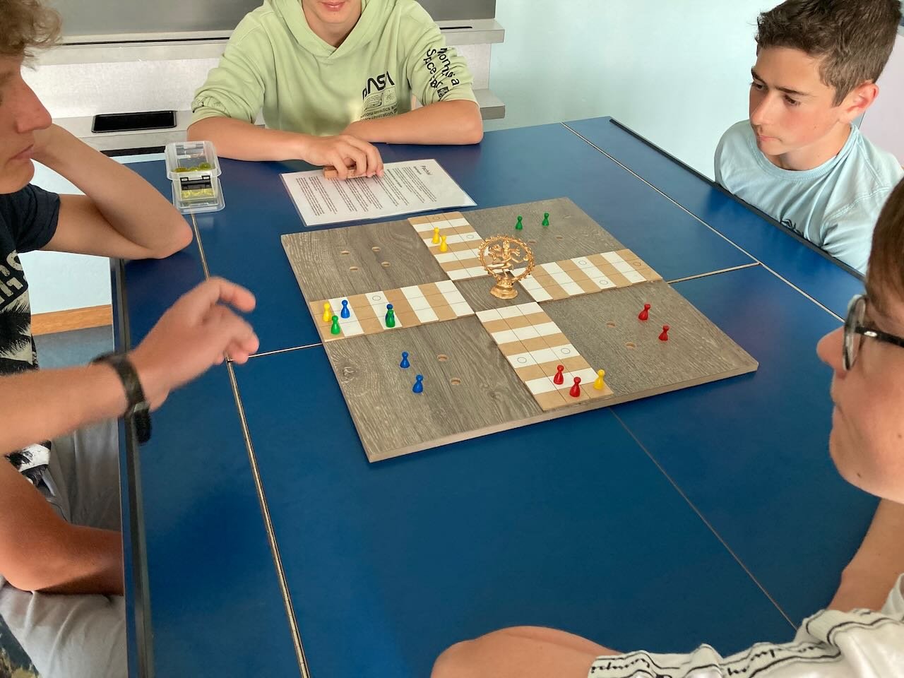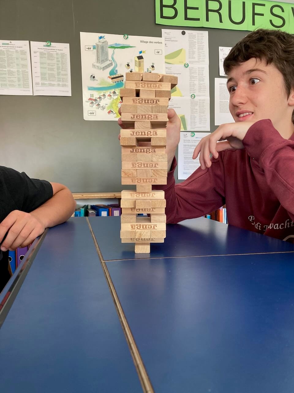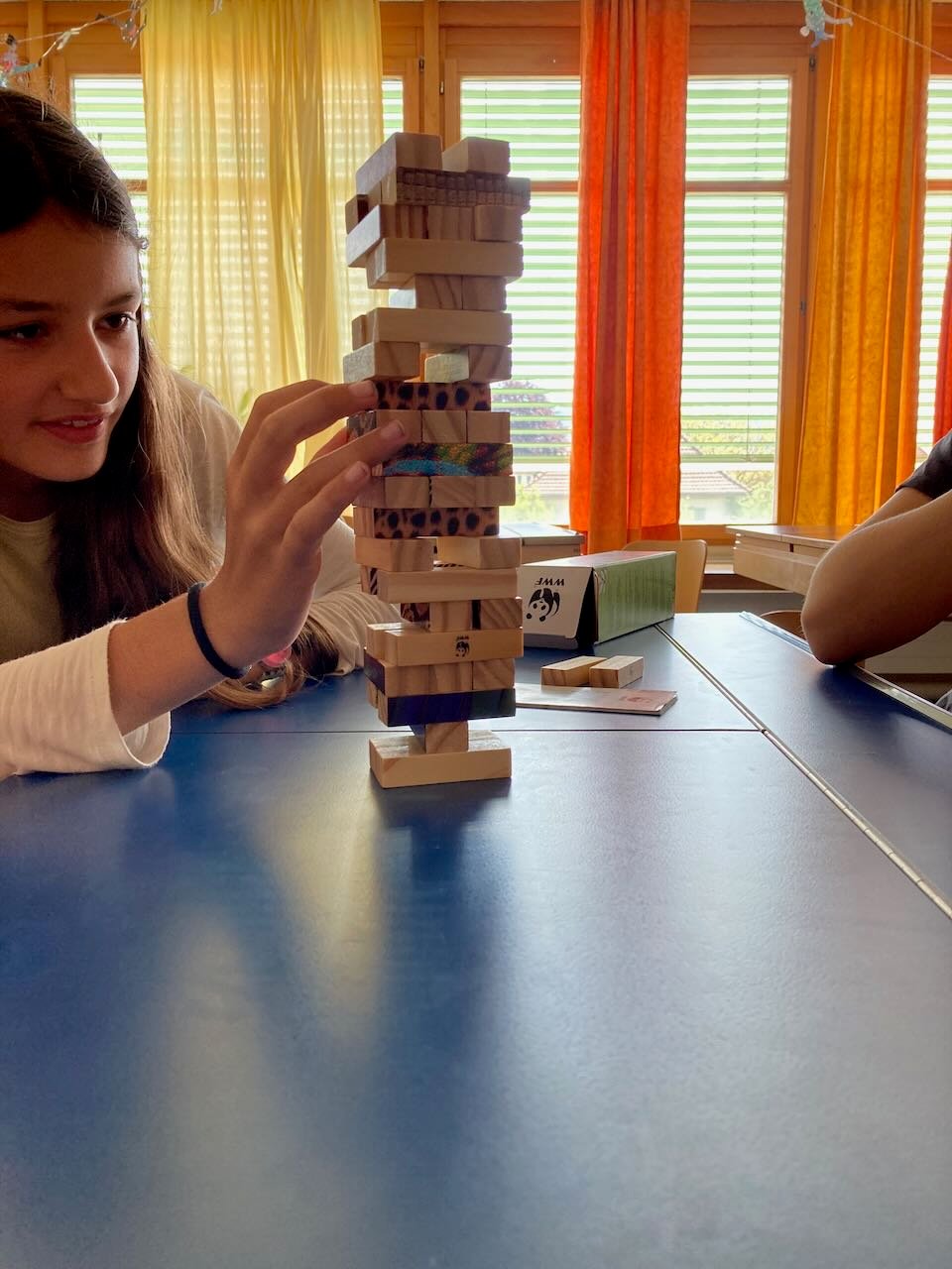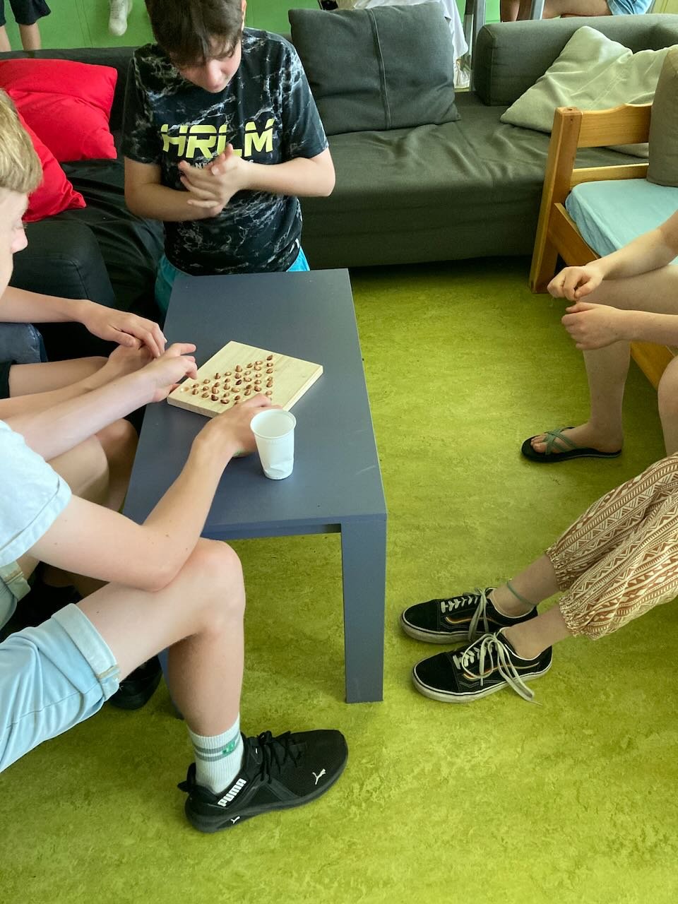 An der Sekundarschule Langnau galt für einen Tag das Motto "Spiele aus aller Welt". Alle Schüler*innen konnten über den Tag verteilt sechs verschiedene Spiele (Brettspiele, Ballspiele, Kartenspiele, Geschicklichkeitsspiele, Knobelspiele, usw.) ausprobieren und spielen.