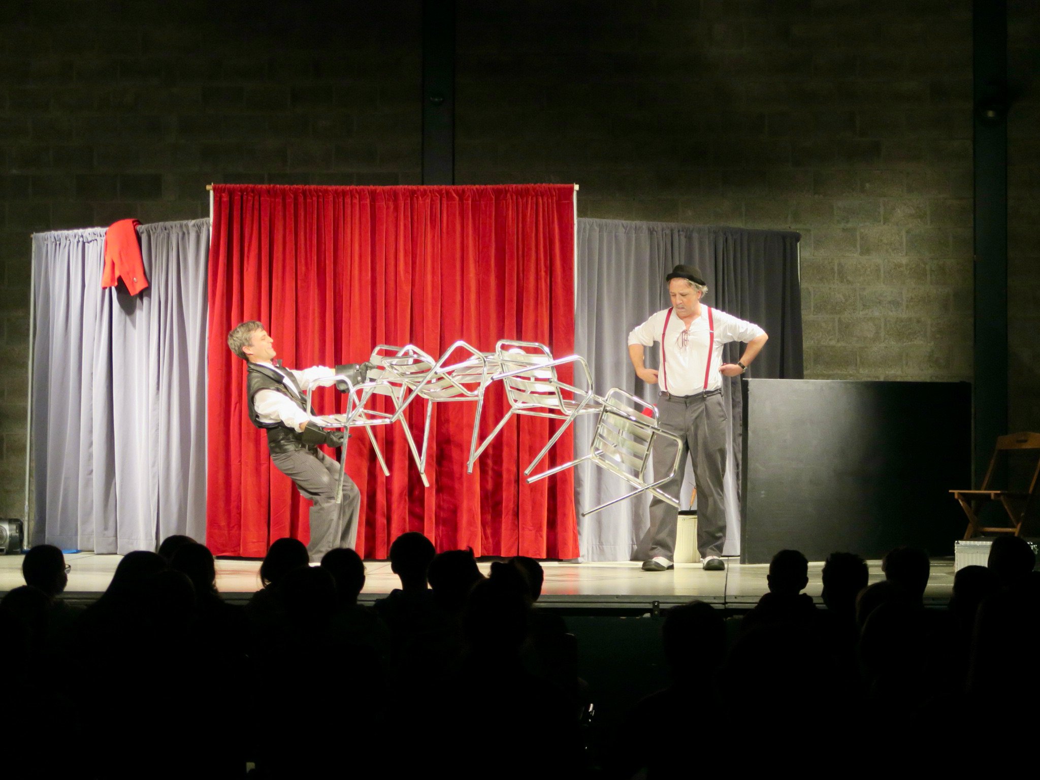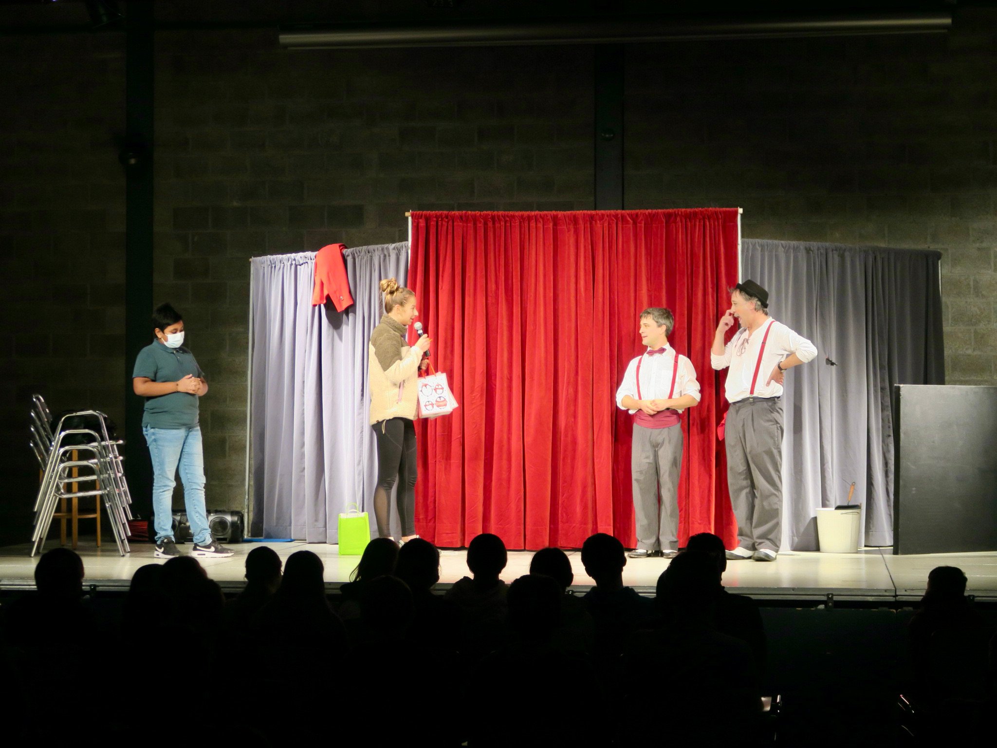 Dem Schüler*innenrat sei Dank: Das traditionelle Semesterfinale fand dieses Jahr wieder live statt, und zwar in der Kupferschmiede Langnau und mit dem Clown-Duo Pepe & Tommy vom Circus Balloni aus Sirnach im Kanton Thurgau. Begrüsst wurde das Duo von den beiden Kulturattachés des Schüler*innenrates, Jathunan Tharmarajah und Noée Heim. Die beiden Clowns zauberten ein unterhaltsames und gewitztes Spektakel auf die Bühne. Statt mit Ballonen glänzten Pepe & Tommy mit clownesken Missverständnisses, mit überraschenden Tricksereien, mit grandioser Mimik und Pantomimik und mit einem Schuss Akrobatik. Geniessen Sie unten den Bilderbogen der einstündigen Vorführung!